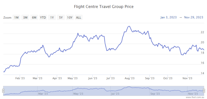 As you can see below, the Flight Centre share price had a great run between January and the end of July, rising by more than 60%.