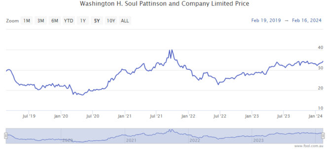 Soul Pattinson currently has a share price of $34.21. Since the start of 2020, it has risen by more than 50%, though past performance is not a guarantee of future returns.