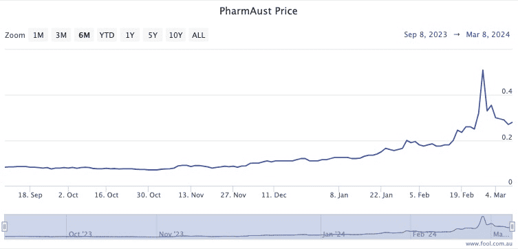 At that time the PharmAust share price was hovering around 7 cents. In fact, it had been more or less at that mark for a good three years.