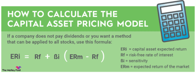 On the other hand, if a company does not pay dividends or if you simply want a method that can be applied to all stocks, the capital asset pricing model (CAPM) could be the better way to go. This is considerably more complicated and can be calculated by this formula: