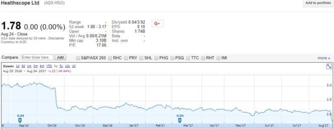 The Healthscope Ltd (ASX: HSO) share price has fallen 40% to $1.78 this year as mediocre results impacted investors: