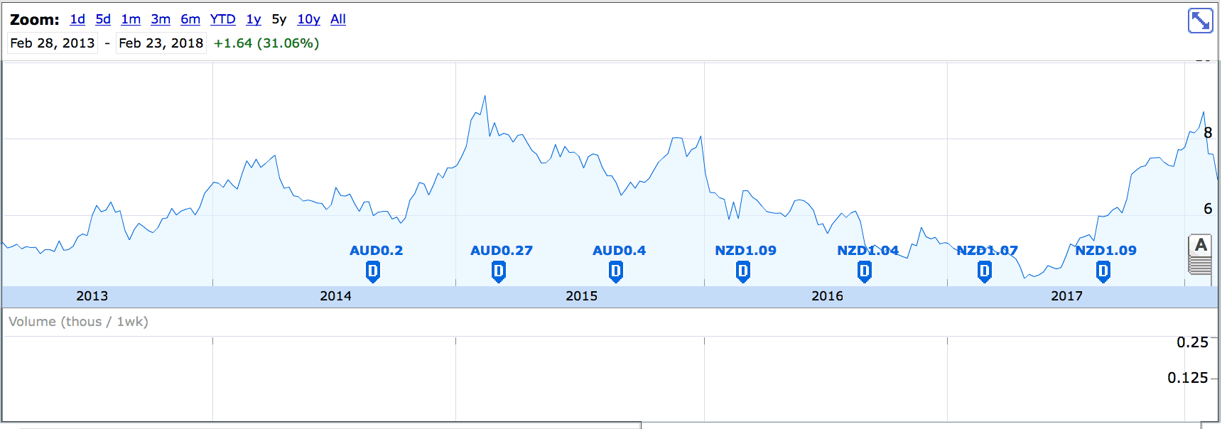 The company will pay an interim dividend of 16 cents per share on 17.46 cents in earnings per share. This places it on a trailing yield of 4.5% plus the tax effective benefits of full franking credits.