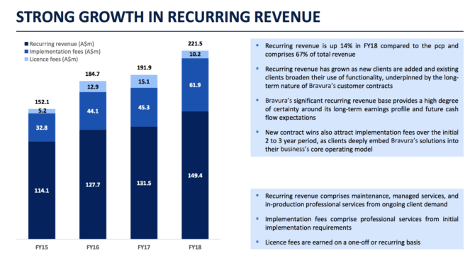 One highlight, in my opinion, during the year was the recurring revenue growth that Bravura Solutions achieved. As you can see above, recurring revenue grew 14% during the 12 months and now comprises 67% of total revenue.