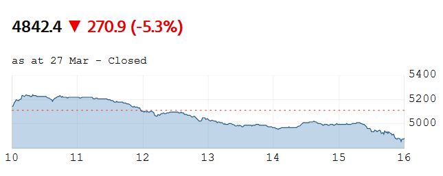 We started the week on Monday with a heavy loss of 5.6%. Then 2 consecutive days of green ink saw the ASX 200 gain 12.5% by Thursday afternoon. But Friday saw these early gains erased and the market ended up shedding its mid-week bounce with a 5.3% loss.