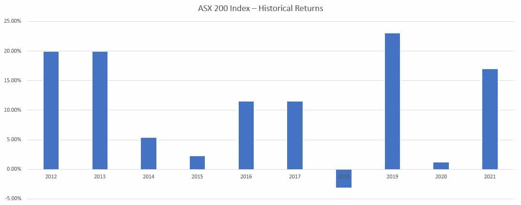 ASX 200 historical returns: 2012-2021