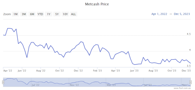 Since April 2022, the Metcash share price has dropped 27% and it is down close to 20% in the past year.