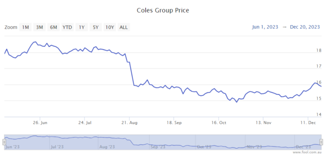 The Coles share price is down 14% in the last six months, compared to a rise of 3% for the ASX 200. The ASX supermarket share has significantly underperformed, but this could be a good time to look at the company.
