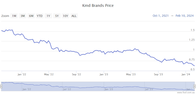 ASX dividend stock KMD Brands Ltd (ASX: KMD) has suffered heavily. It's down 13% this year, 36% in the last year and 60% from October 2021.
