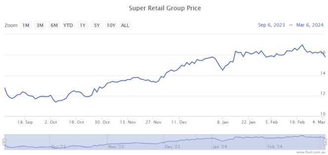 In the last six months, the Super Retail share price has risen around 25%.