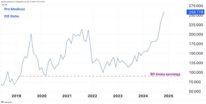 In fact, Pro Medicus' earnings multiple has been above 90 times the entire time I've owned a slice of the business, as displayed below.