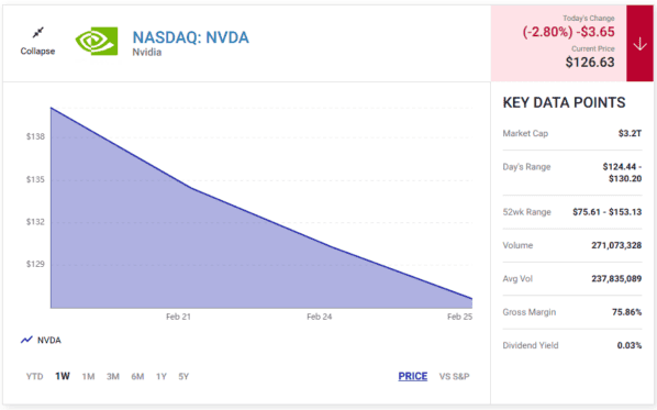 Nvidia stock was slipping on Tuesday as investors considered the potential impacts from new tariffs, new Chinese chip sanctions, and other pressures. The tech giant is also due to report its fourth-quarter report after the market closes on Wednesday, and investors are feeling some jitteriness when it comes to valuation profiles for AI stocks.