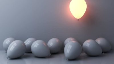 balloons with one bright one flying